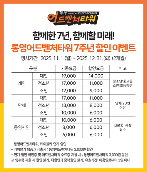 - 통영어드벤처타워 7주년 기념 할인 이…2025-10-30
