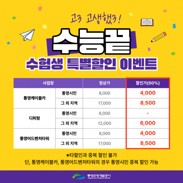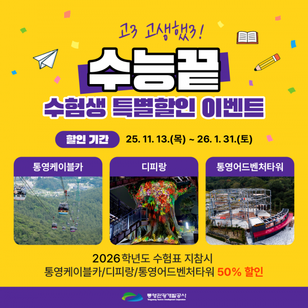 통영관광개발공사에서는 수능 수험생 여러분의 수고를 응원하며,