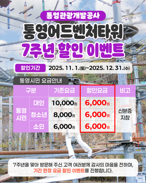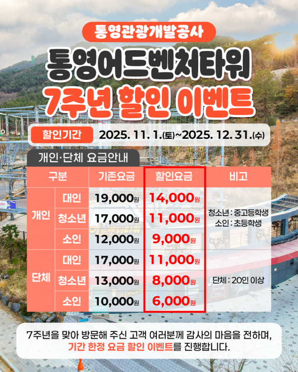 통영어드벤처타워 7주년 기념 할인 이벤트!